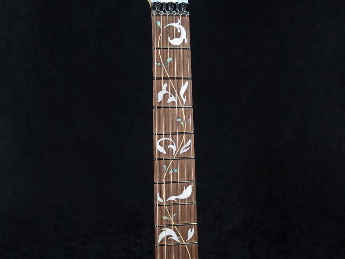 アルダーボディにネックにはPIA5pc Maple/Walnut neckを採用。またハイ・フレット部分をスクープするように加工したスキャロップド指板を採用しています。
