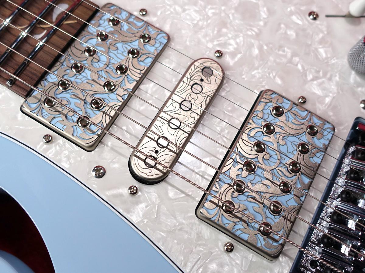 全てのピックアップ・カバーにはギターのデザイン・コンセプトと完全に符合する美しい装飾が施されています。