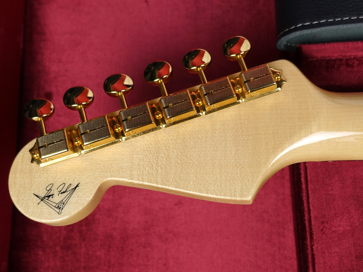 グレッグが手掛けたNew Old Stock(NOS)仕上げ、ゴールドハードウェア採用の63ストラト、"Fender Custom Shop MBS 1963 Stratocaster NOS GH Black by Greg Fessler"です。