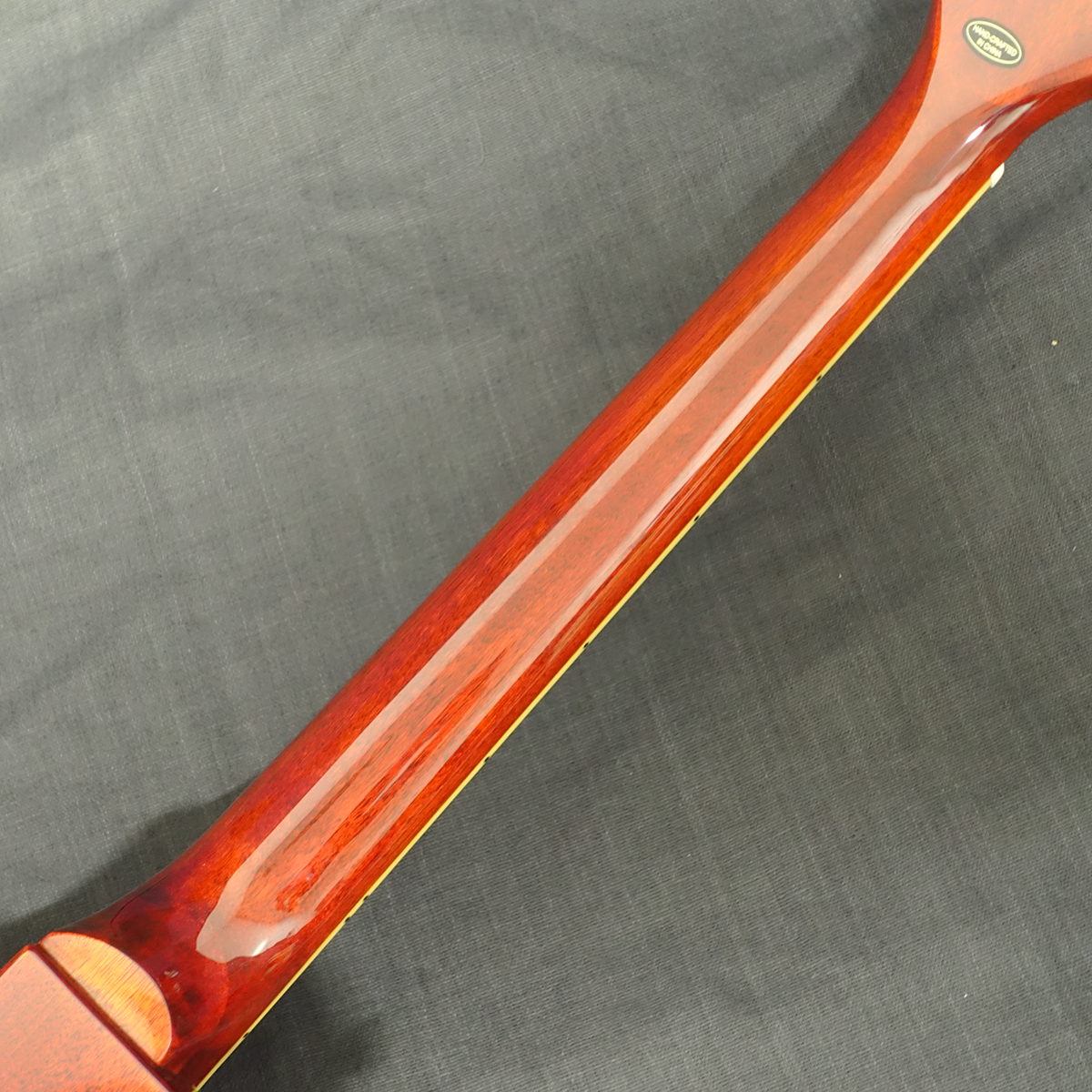 マホガニー・ネックにはローズウッド指板を採用し、パーロイド・トラペゾイド・インレイ、22本のミディアム・ジャンボ・フレット、そして素早い演奏性を実現するスリムテーパー 60s Cプロファイルを備えています。