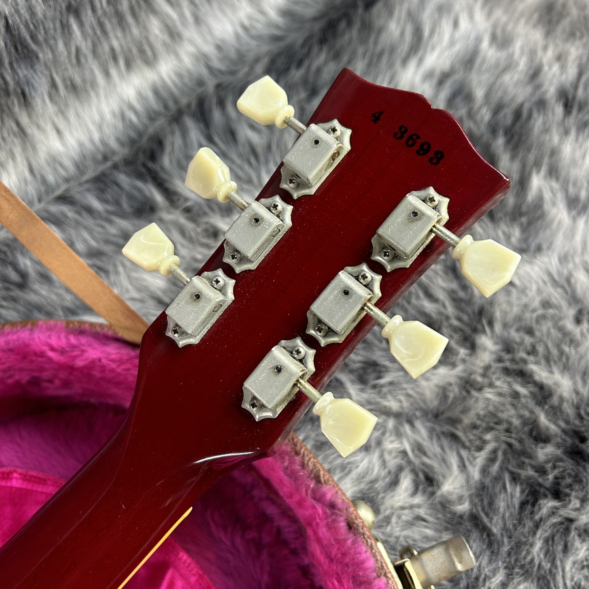 トラスロッドは余裕があり、フレットはプレーン弦を中心に減りが見られ約7割程の残量となりますが、現状プレイアビリティは良好です。