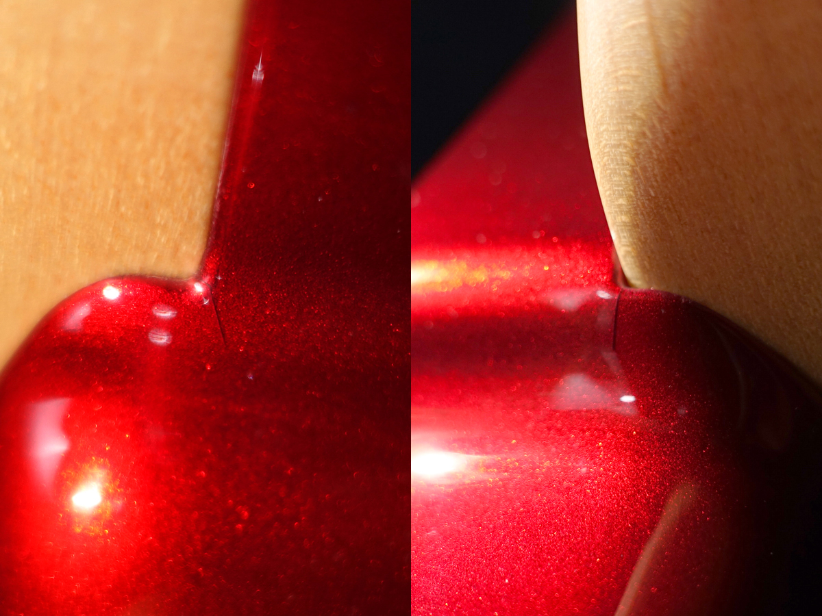 透明感のあるキャンディアップルレッドカラーが光の当たり方によって表情を変え、見る角度ごとに異なる美しさを演出する魅力的な1本です。