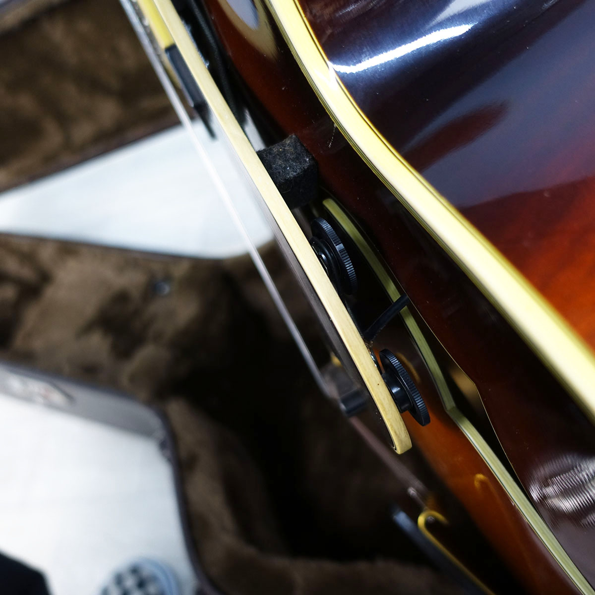 スキャロップド・ナット仕上げとなっており、各弦の分離感を求めた形状となっています。整形や溝のコンディションは問題なくきれいに仕上がっています。