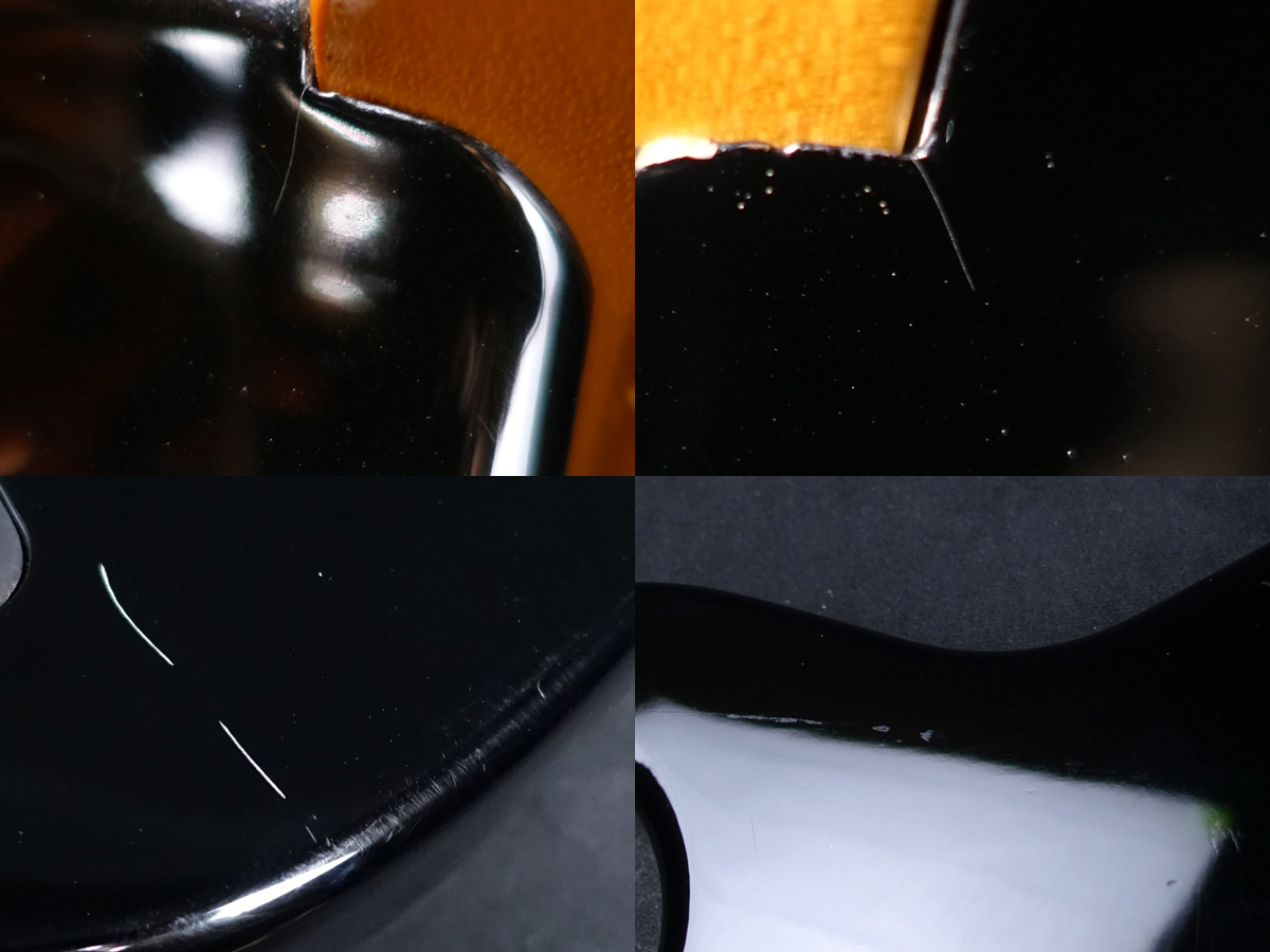 ボディバックに引っかき傷、ネックジョイント部のボディ塗装割れが見受けられる他、全体的に使用に伴う弾き傷・スレ傷や細かな打痕、パーツや塗装のくすみも散見される等、年式相応の使用感があります。