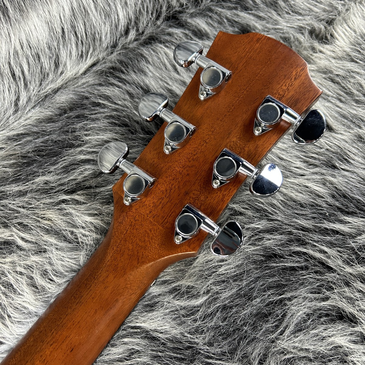 トップには新品の状態でも長年弾き込まれたかのような豊かな鳴りを実現するヤマハの独自技術であるA.R.E.(Acoustic Resonance Enhancement)処理が施されており、取り回しの良いボディながらもふくよかな鳴りです。