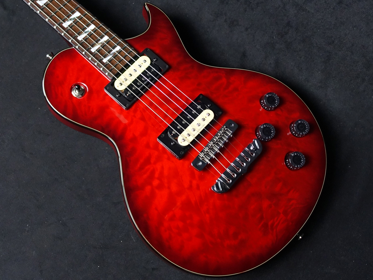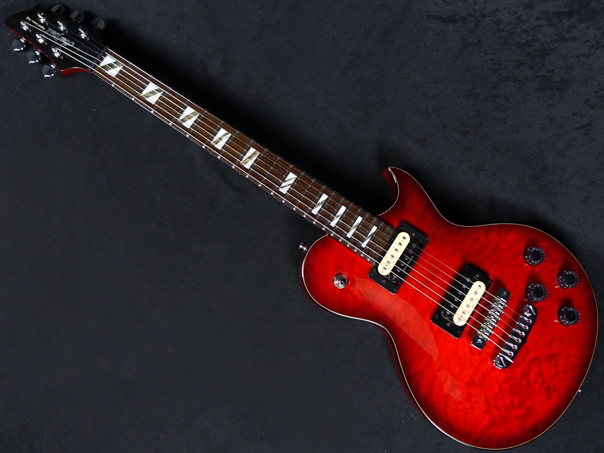 ナトーボディに美しい木目のラミネイト・キルテッドメイプルをあしらったボディ、ナトーネックとローズウッド指板を採用したウッドマテリアル。