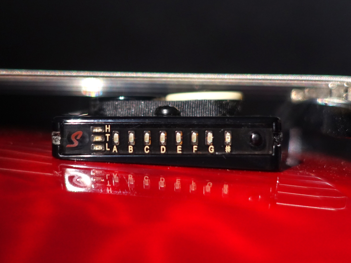 また、リアピックアップ部にエスカッション一体型クロマチックチューナー「E-Tuner」を搭載。視認性に優れ、手元で簡単にチューニングを確認できます。