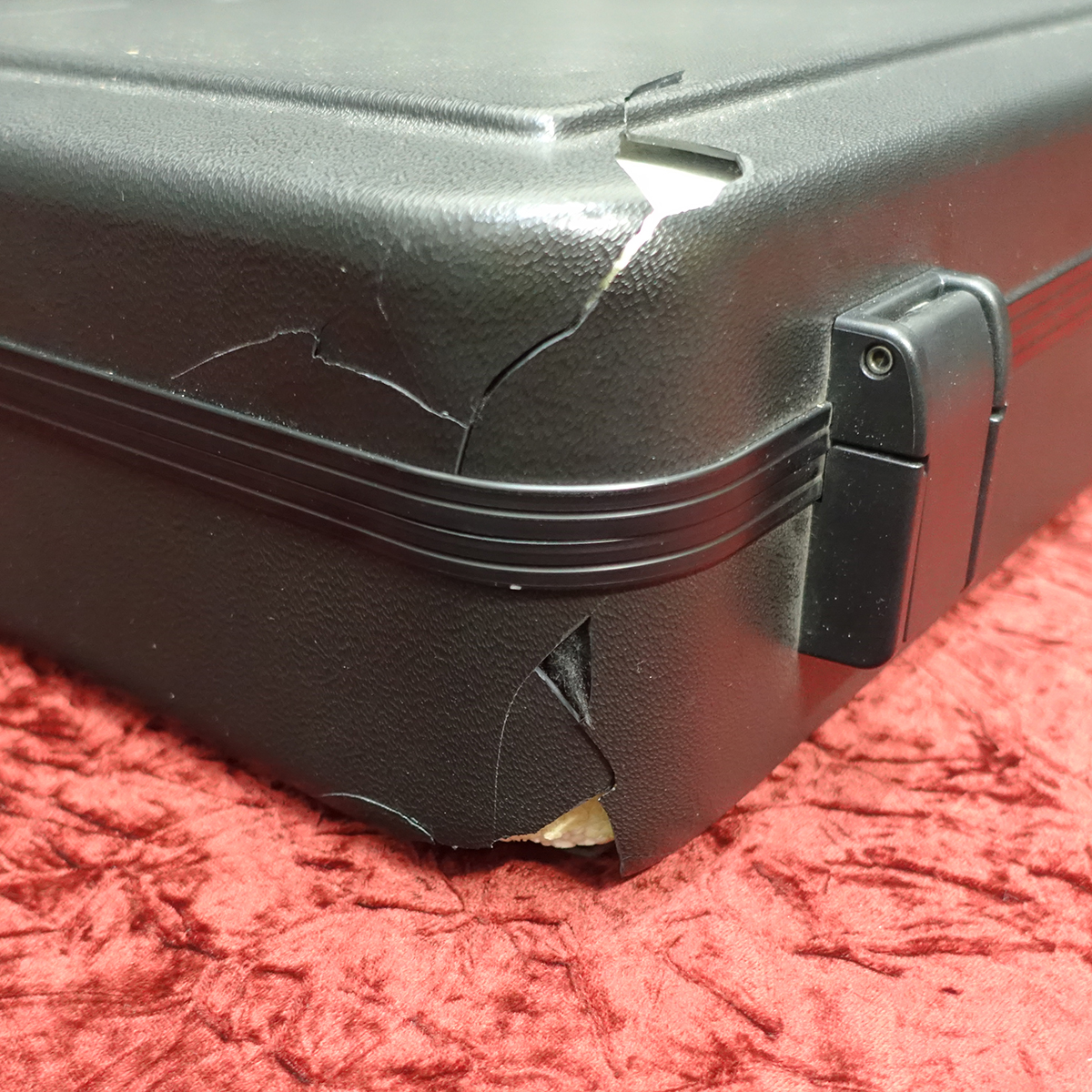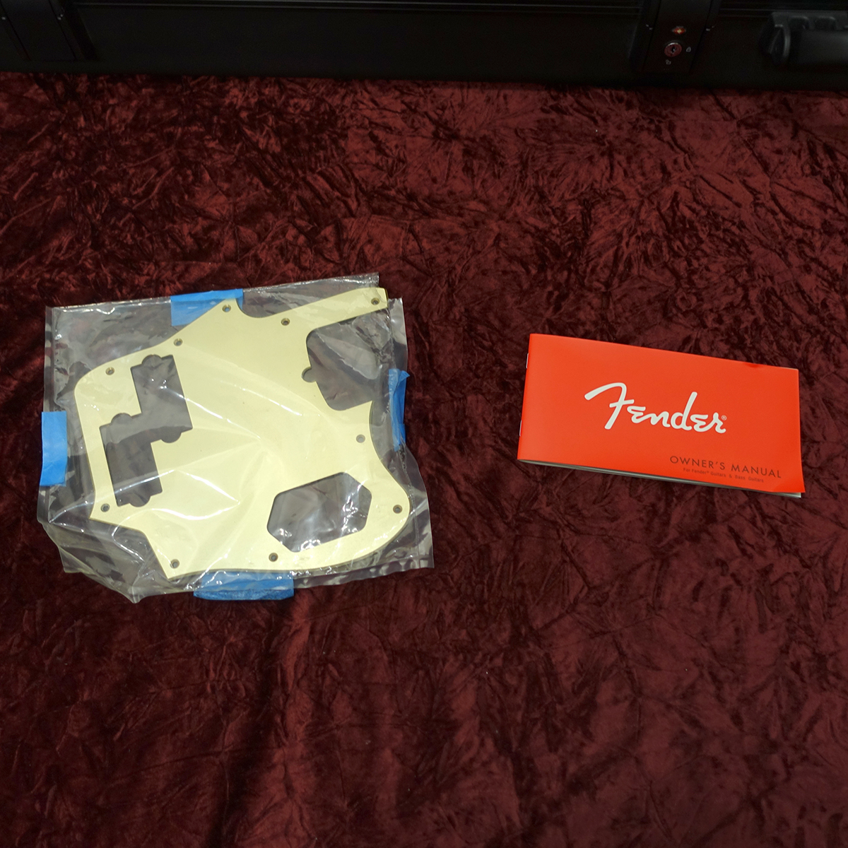 ハードケース(破損あり)、アノダイズドピックガードが付属します。
