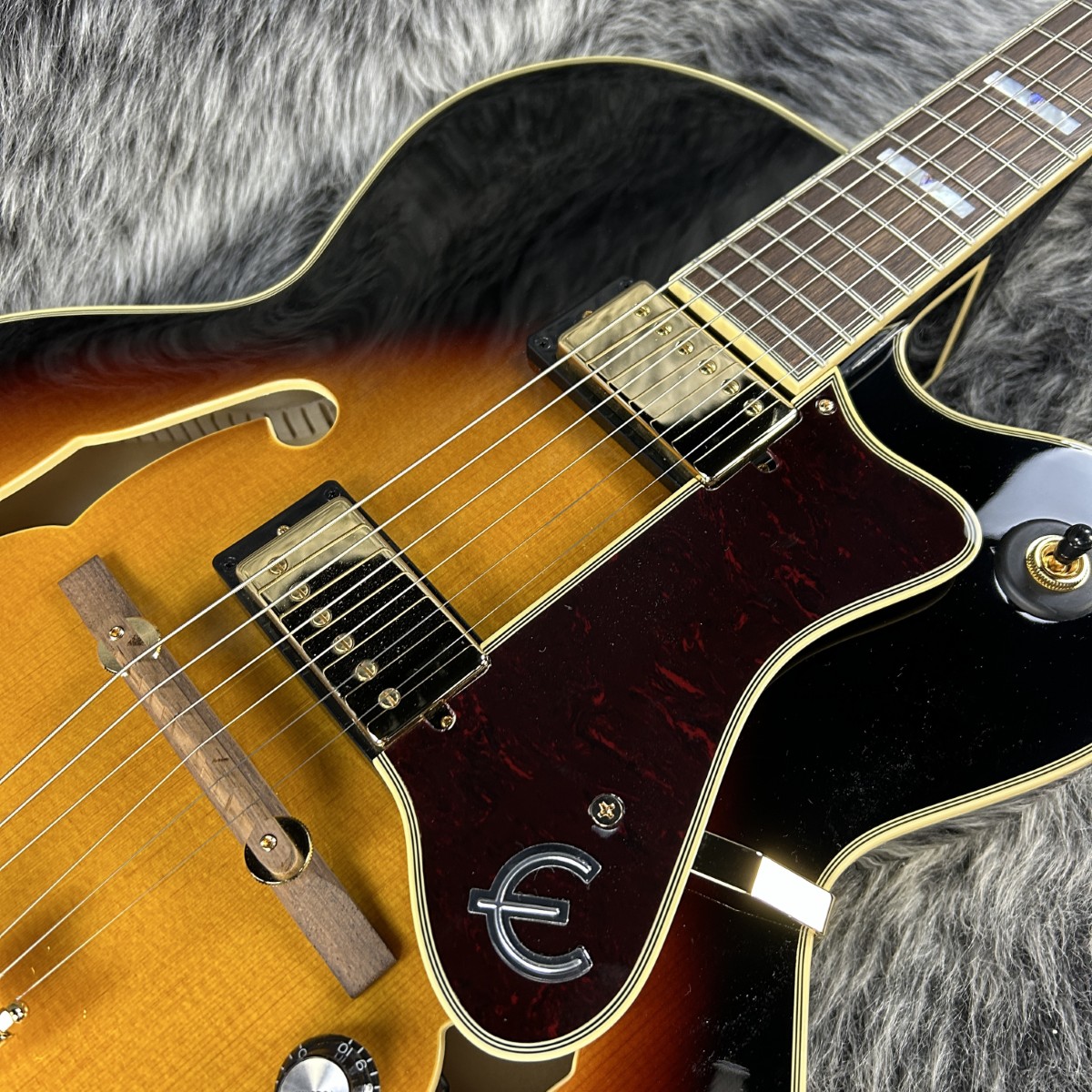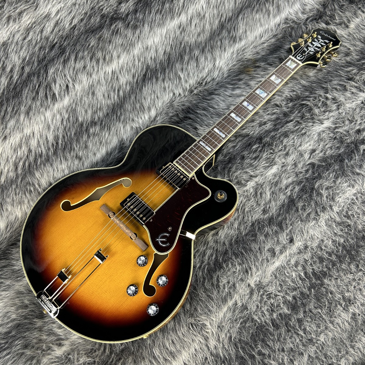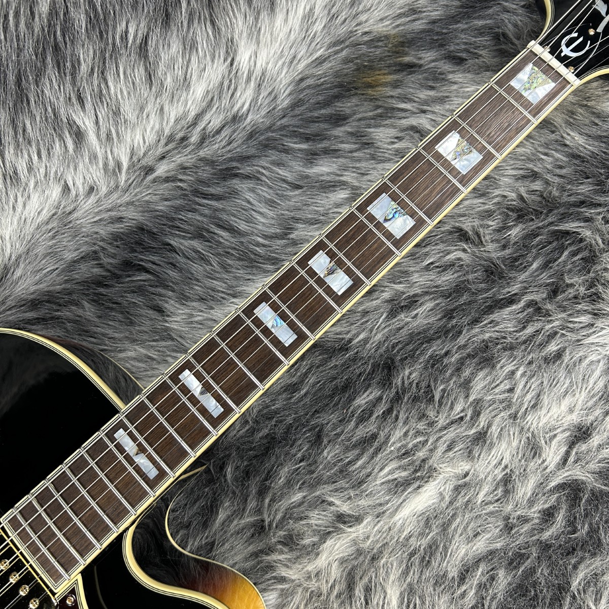インディアンローレル指板上ではアバロン素材によるトライアングルインレイとマザーオブパール素材によるブロックインレイが施され、このジャンルレスに躍動するアーチトップモデルに落ち着いた気品をもたらしています。