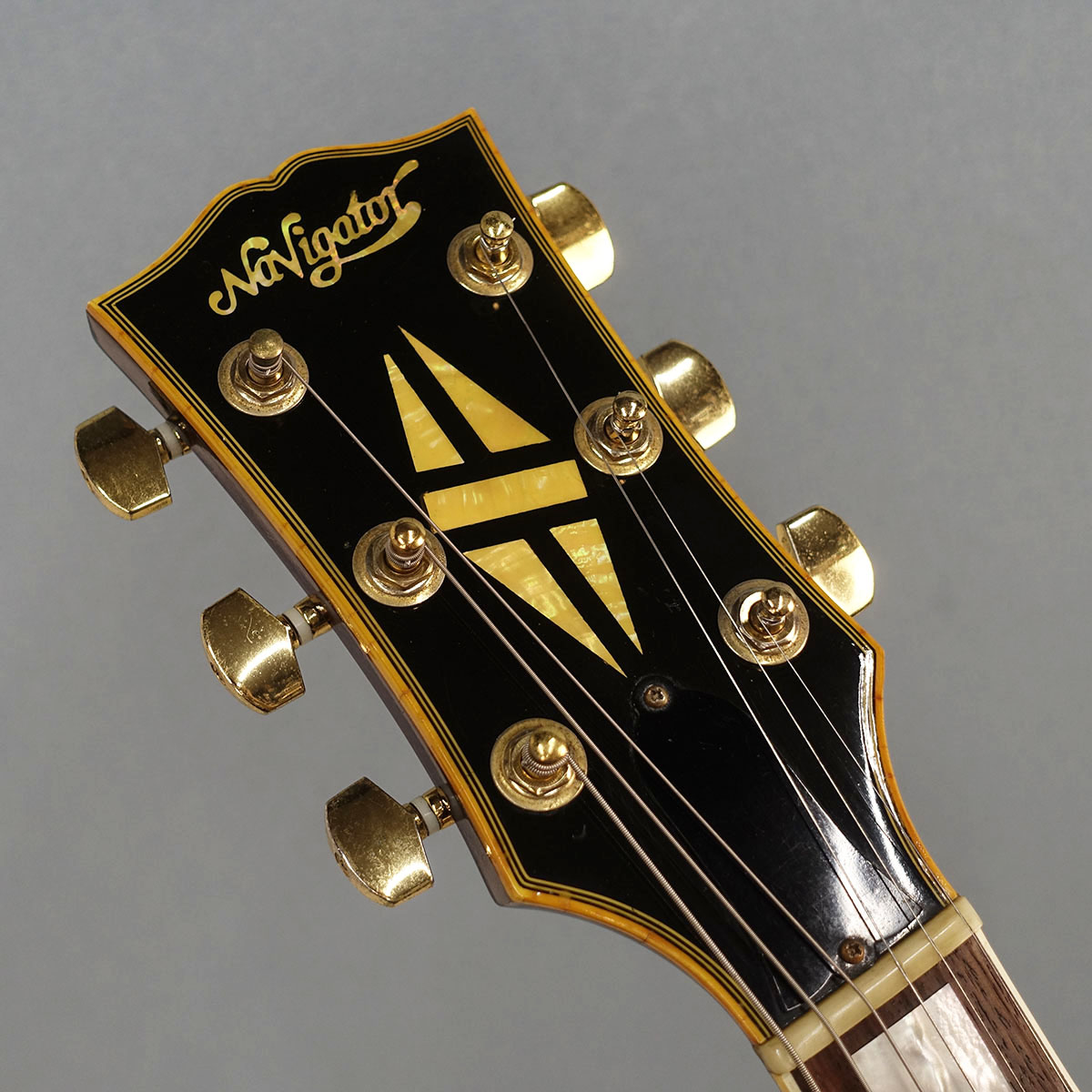 ヘッドインレイが変更となる前のレアな70年代製、ルックスも70s感が漂っているナビゲーターのレスポールカスタム。