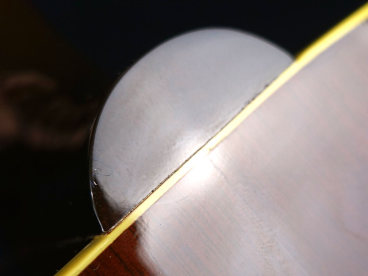 フレットの全体的に7割程度の残り、ハイポジションは摺合せに伴い5割程度残りといった状態でビビリや音詰まりは無くプレイアビリティは問題はございません。