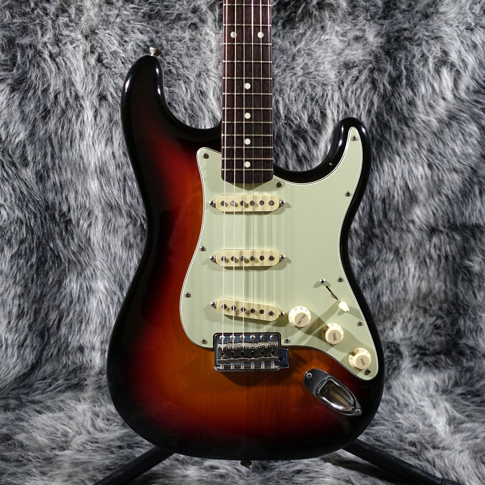 アルダーボディにメイプルネック&ローズ指板のオーソドックスなストラトタイプ。