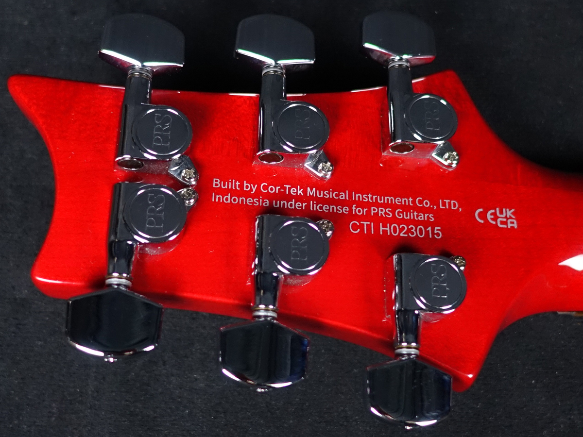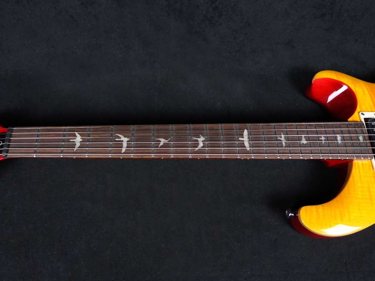 マホガニー・バック、メイプル・トップのボディ、Wide Thinカーブのメイプル・ネック、ローズウッド指板、バード・インレイを合わせ、PRSデザインのトレモロ・ブリッジを装備。