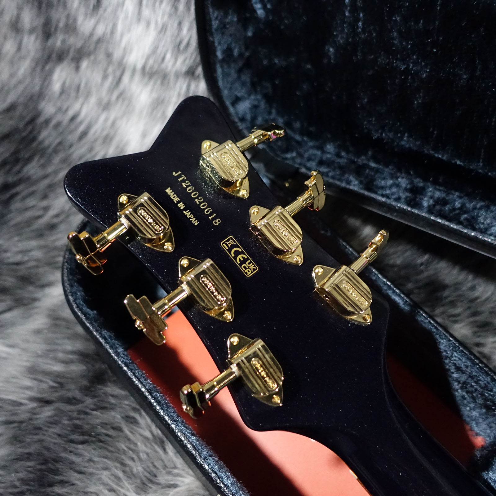 ピュアなトーンと快適な弾き心地を追求し、クラシックとモダンな仕様を融合。ジュエルドG-Arrowノブ、マルチプライのパーフリング付きゴールドスパークルバインディング、パーロイドNeo-Classicサムネイルインレイ、蓄光式Luminlayサイドドット、ゴースト処理されたGretschロゴとFalconグラフィックをあしらった厚みのあるゴールドヴィンテージプレキシピックガード、Bigsby B6GPストリングスルーヴィブラート、ピン留め式エボニーべース付きSpace Controlブリッジ、ボーンナット、Grover Imperialチューナーなどの特徴を備えています。過去から蘇ったような佇まいに、洗練されたスタイルとサウンドを融合したこの1958 Custom Falconは、群衆の中でひときわ輝く存在感を求めるプレイヤーを必ず満足させる一本です。