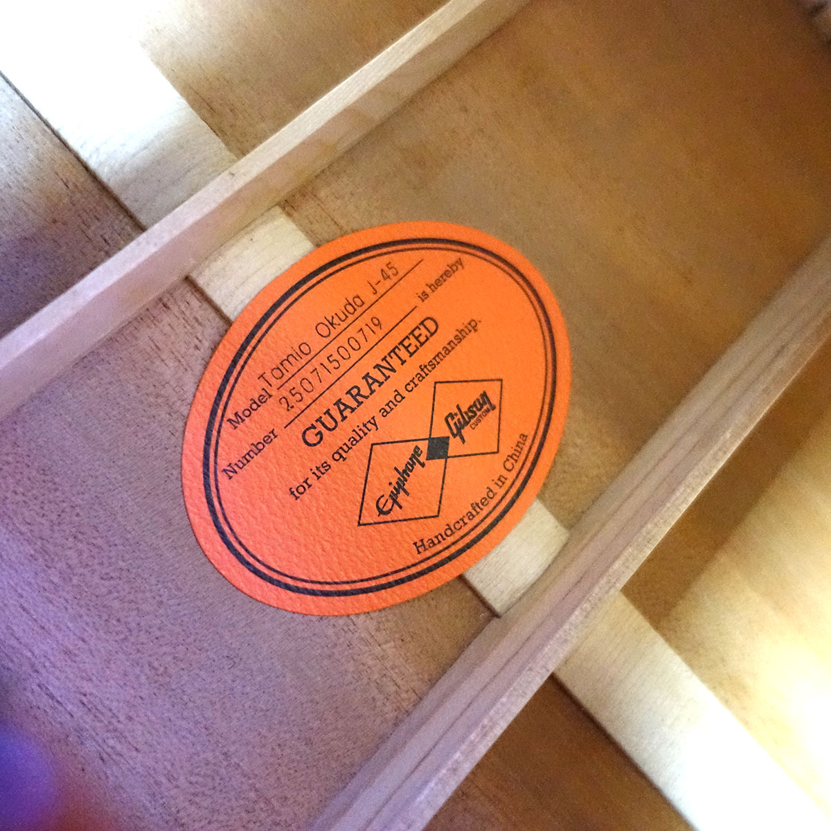 当モデルは、奥田氏愛用の1945年製ギブソンJ-45をベースに2021年にリリースされた『Gibson Tamio Okuda J-45』のエピフォン版で、奥田民生氏監修のもと制作されました。