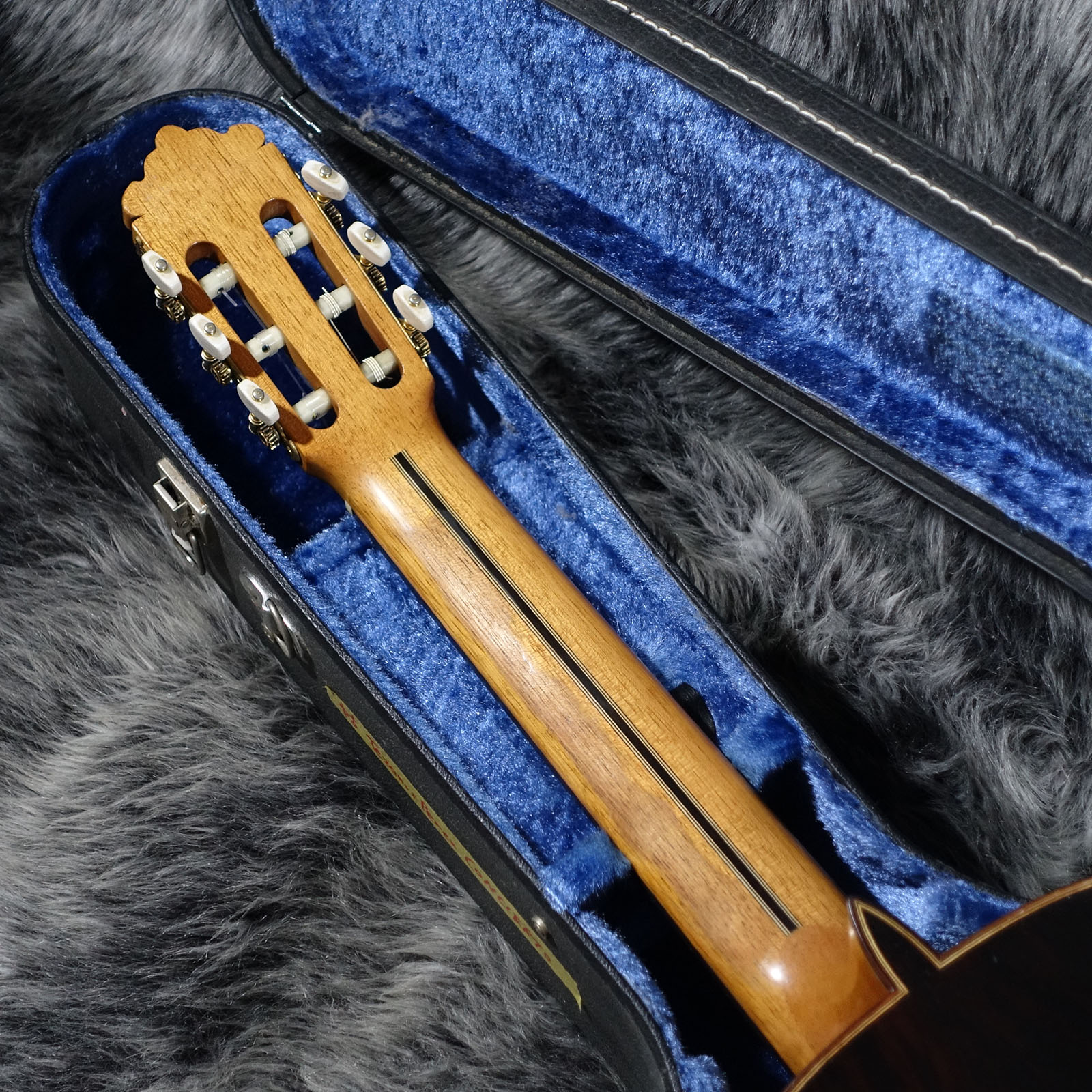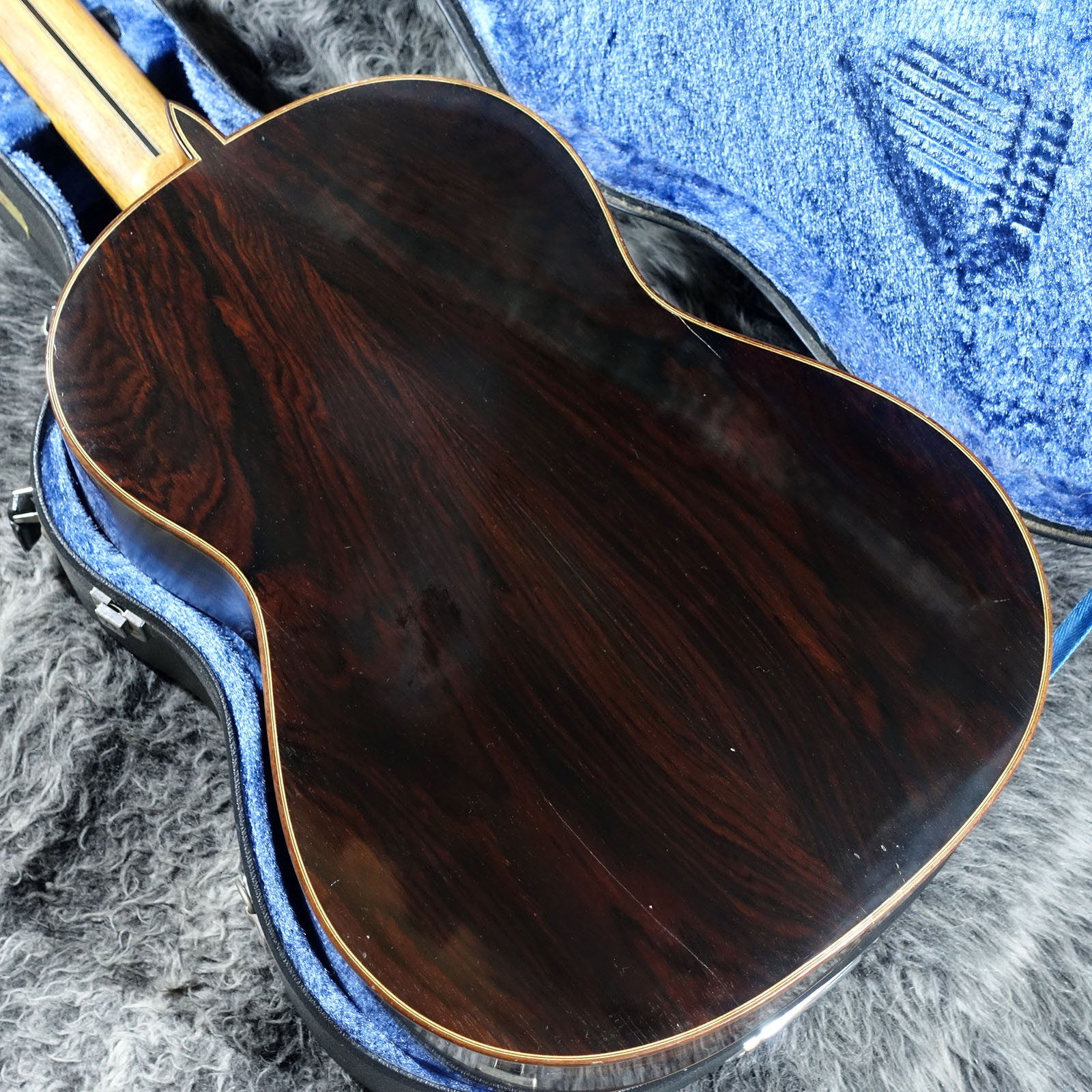 トップ材にスプルース単板、サイド材は内側にシープレスを貼り合わせたハカランダのダブルサイド構造、バック材はハカランダ単板となります。
