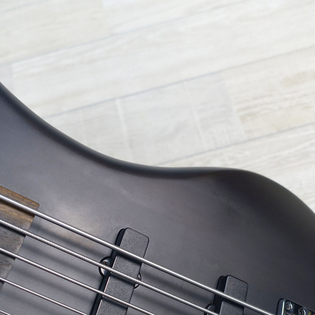 本機は5弦、レフティ、フレットレスと要素盛りだくさんの一本。